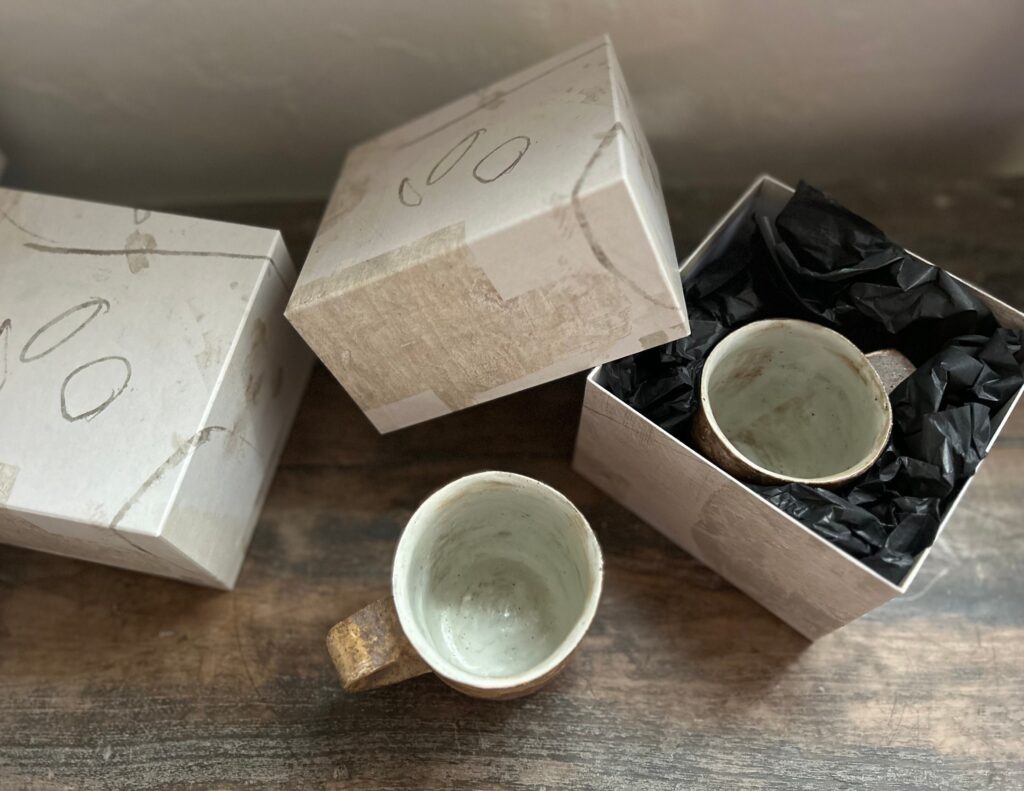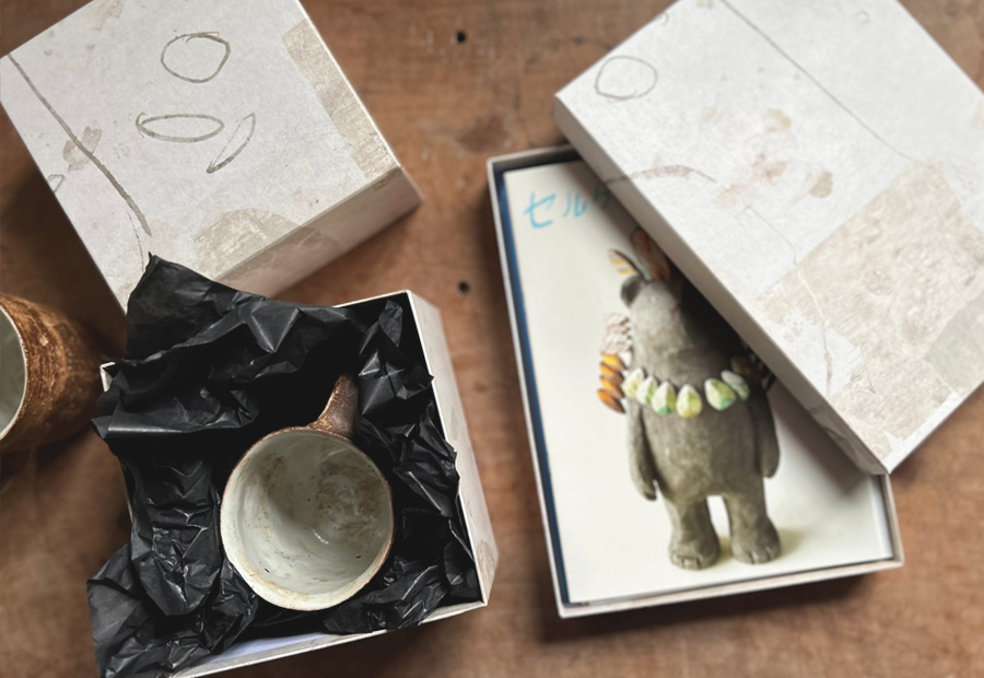 大切な作品をオリジナルの包装紙で、それぞれのサイズに合わせ丁寧に箱を作らせていただいております。