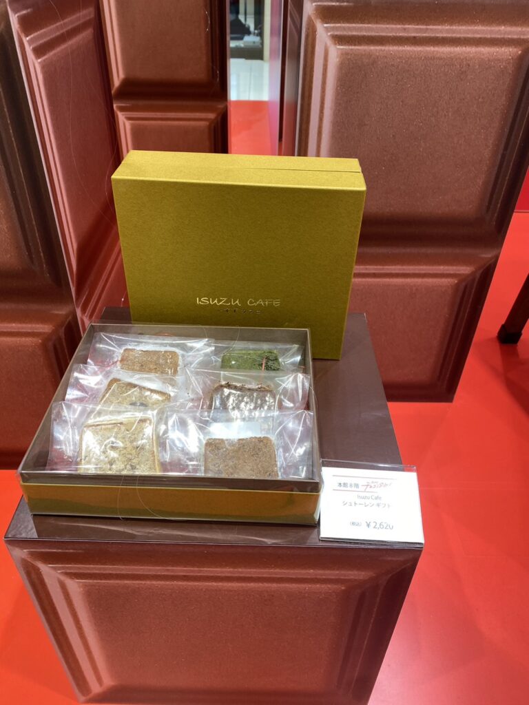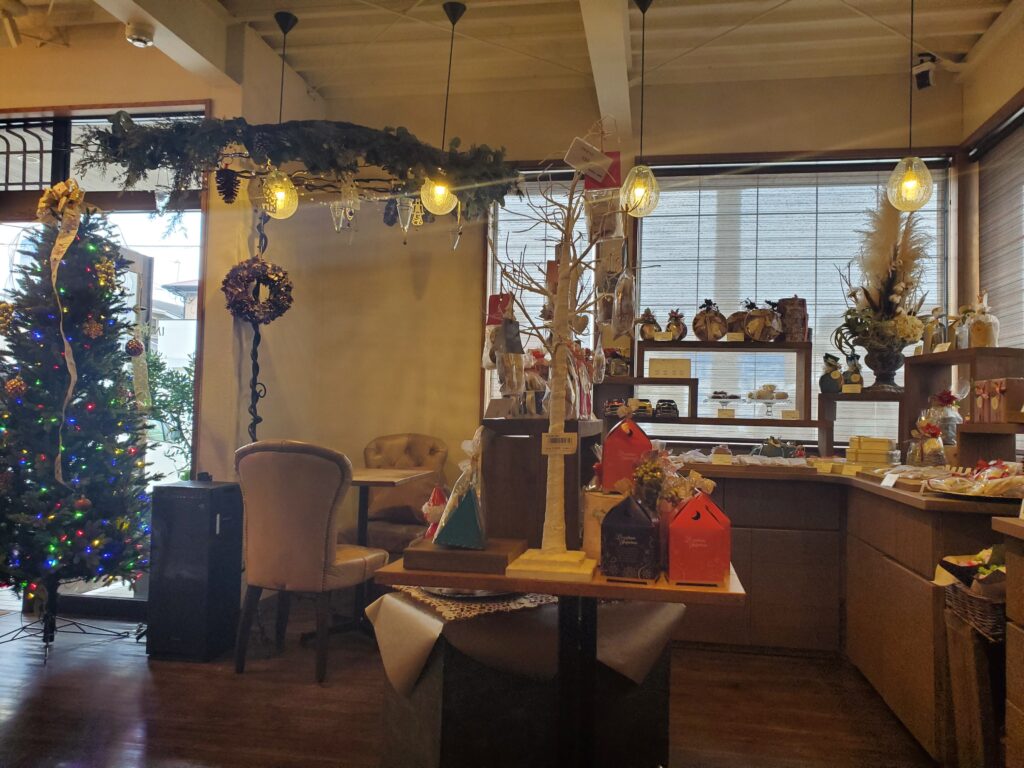 いすずカフェの店内にはスイーツのギフトコーナーがあります。クリスマスやバレンタイン、ひなまつりなど季節のイベントに合わせ、華やかで可愛らしいパッケージのお菓子が並びます。
