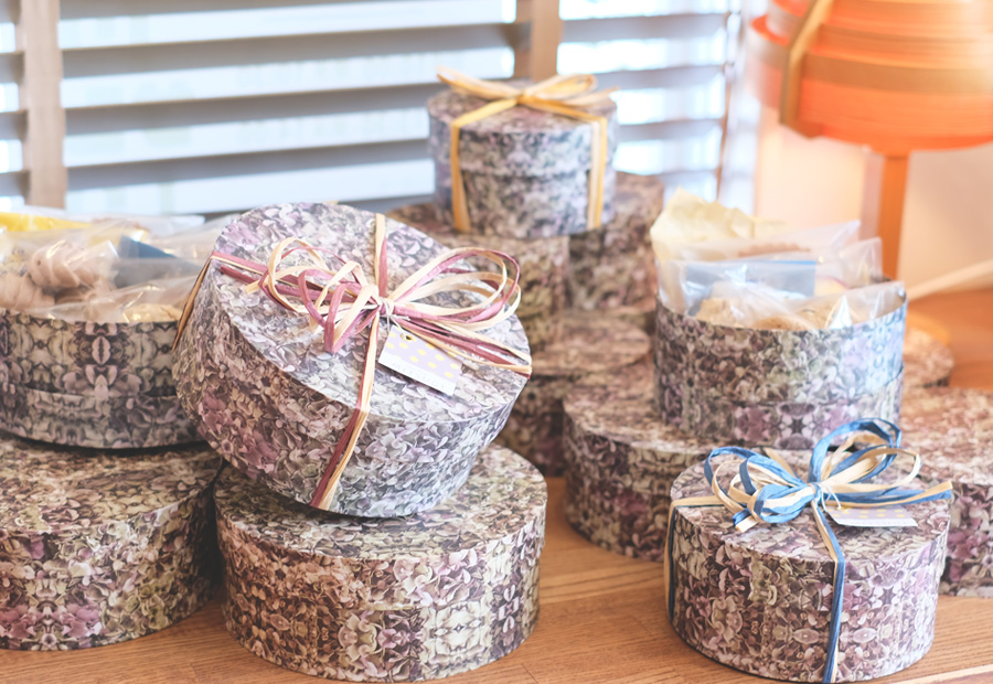 落ち着きのある秋色あじさい柄は贈る相手や目的を選ばず、幅広い年齢の方に喜ばれるギフトボックスになっています。